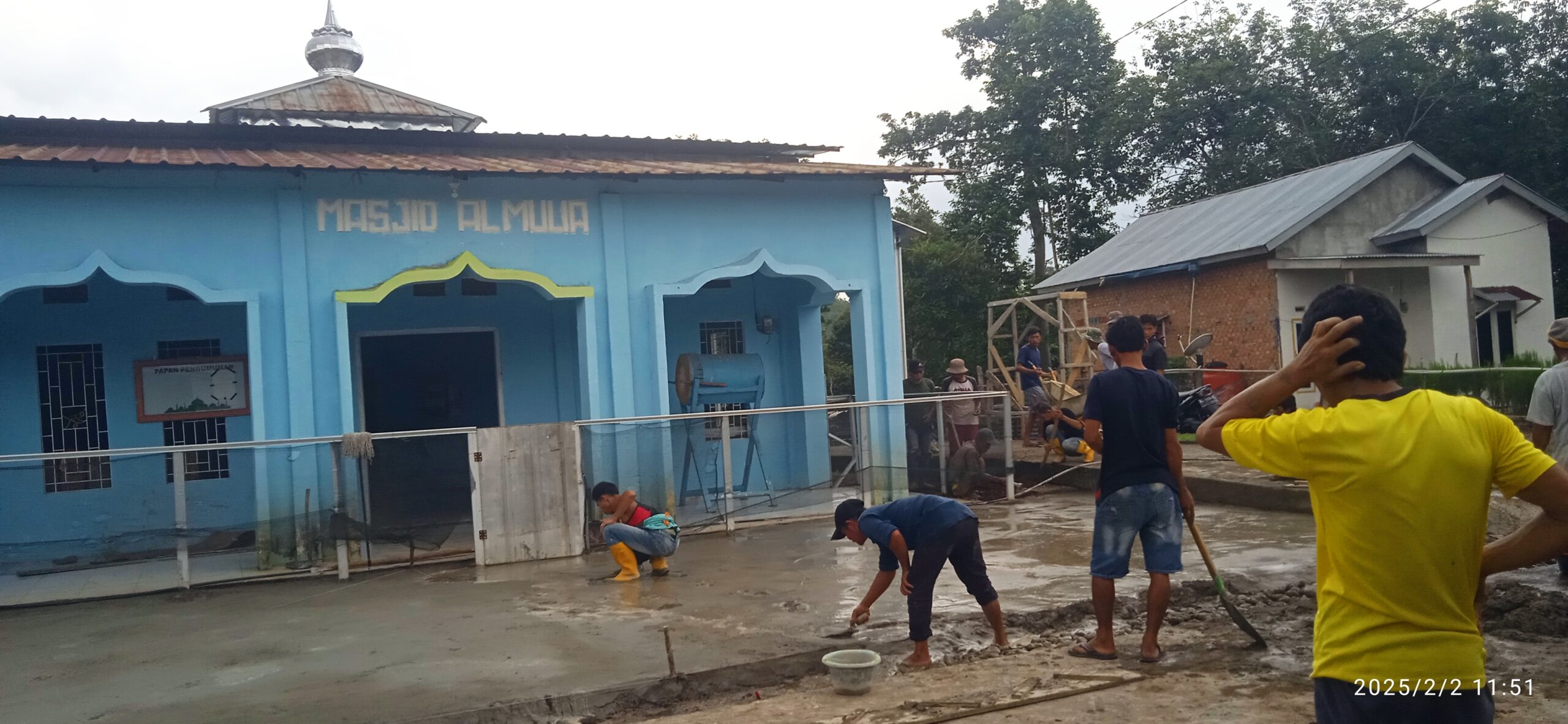 Dalam rangka meningkatkan fasilitas sarana prasarana aksesibilitas rumah ibadah seperti yang dilakukan warga Rw.03 rt.11 Kelurahan Kota Baru Kecamatan Lahat sekira pukul 07.30 Wib secara bergotong royong Melaksanakan pembangunan sarana Halaman Parkir masjid di Masjid Al- Mulia